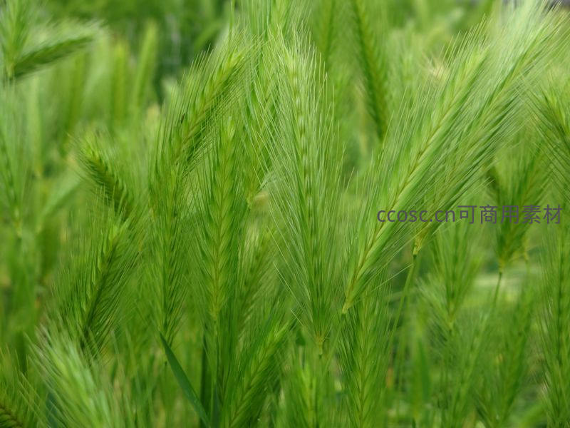镜头聚焦于一片生机勃勃的绿色麦田,饱满的麦穗在阳光下舒展,展现了农作物旺盛的生命力与自然的和谐之美。