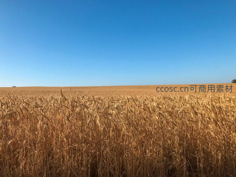 一望无际的金色麦海与纯净蓝天