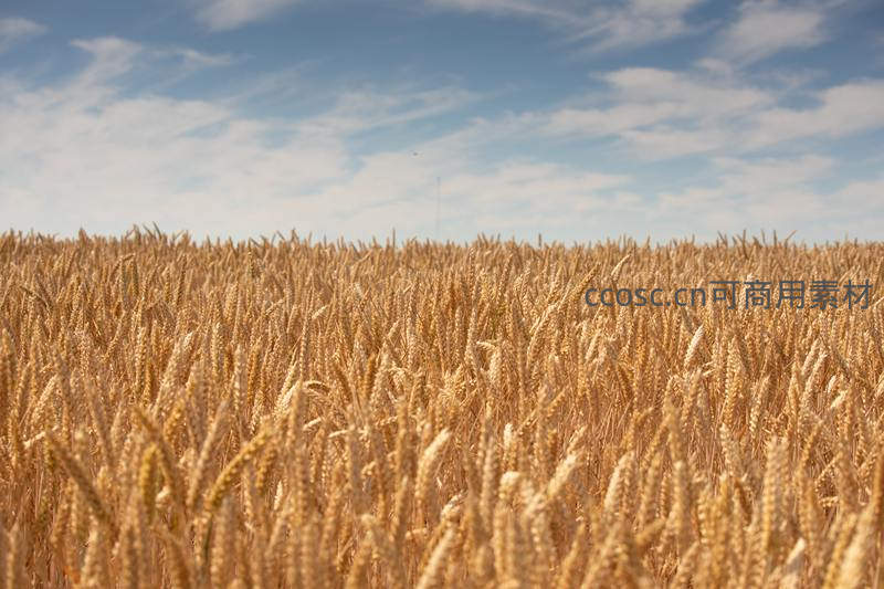 一望无际的金色麦田铺展至天际,湛蓝天空点缀朵朵白云,展现出大地丰饶与自然和谐共生的壮丽景象。