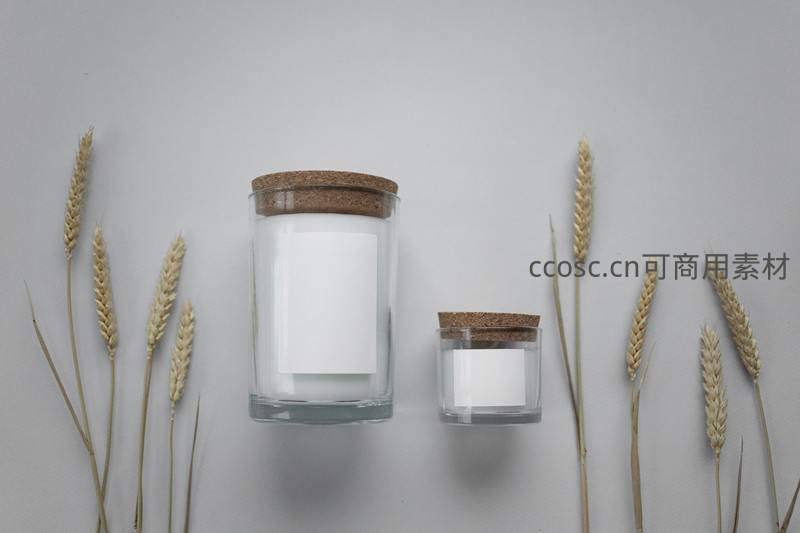简约香薰蜡烛与麦穗静物摆拍