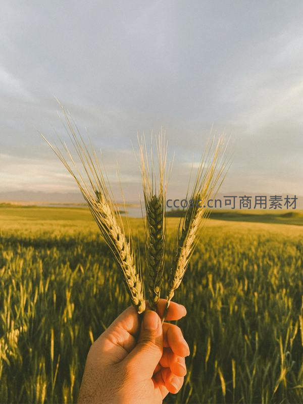 手握三株麦穗,田野为背景