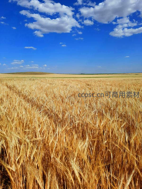 辽阔麦田航拍,蓝天白云下的金色海洋