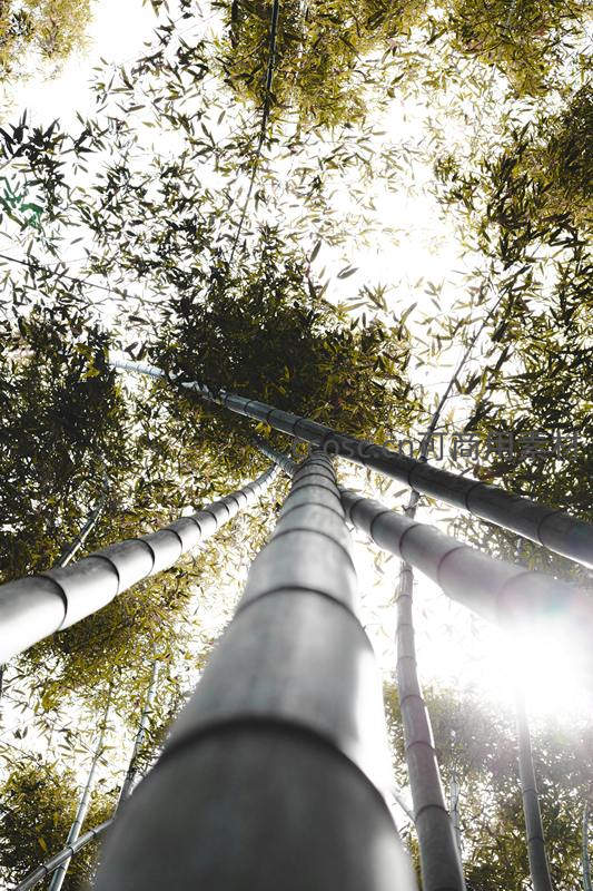 仰望竹梢,阳光穿透绿意盎然