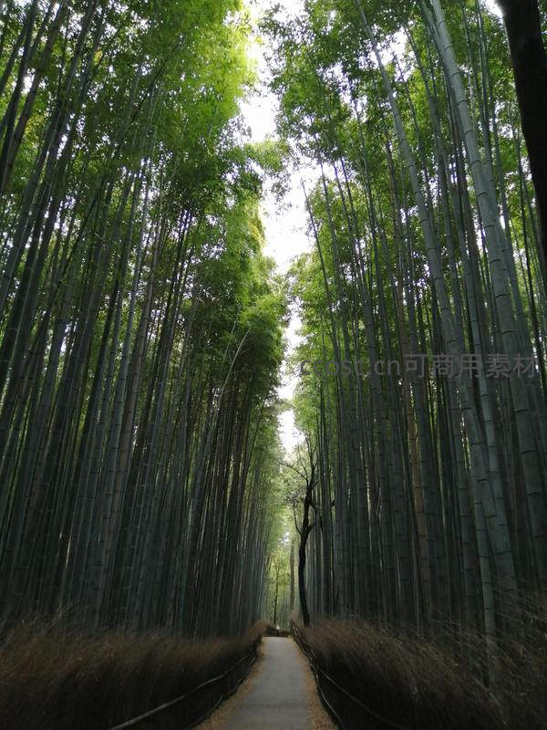 一条蜿蜒小径穿梭于高耸密集的竹林间,两侧竹影交错形成天然拱廊,地面铺满落叶,空气清幽,是理想的漫步与冥想之地。