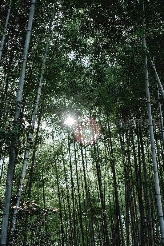 茂密的竹林中,阳光从叶隙间倾泻而下,形成梦幻光斑,营造出静谧清新的自然氛围,令人身心舒畅。