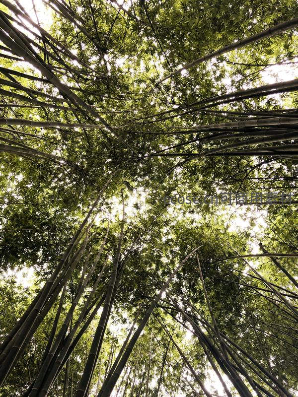 从低角度仰望竹林顶端,密集竹竿形成天然穹顶,阳光穿过叶隙投下明暗交错的光影,宛如大自然绘制的立体画作。