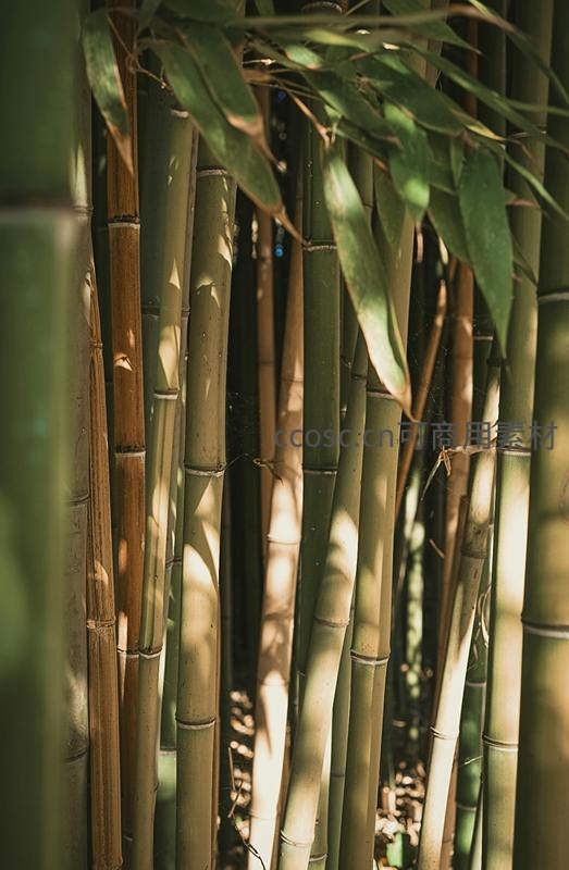 阳光透过茂密竹叶洒下斑驳光影,翠绿竹竿挺拔而立,营造出清幽宁静的自然氛围,令人身心放松。