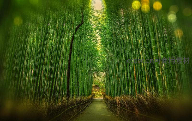 蜿蜒小径穿行于浓密竹海之间,尽头透出柔和光晕,仿佛通往世外桃源,适合冥想与深度放松之旅。