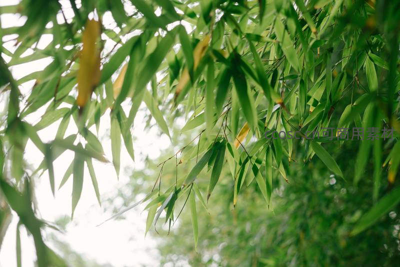 聚焦竹叶细节,叶片边缘清晰可见,阳光透过缝隙洒落,形成明暗交错的光影效果,展现自然界的细腻与生命力。