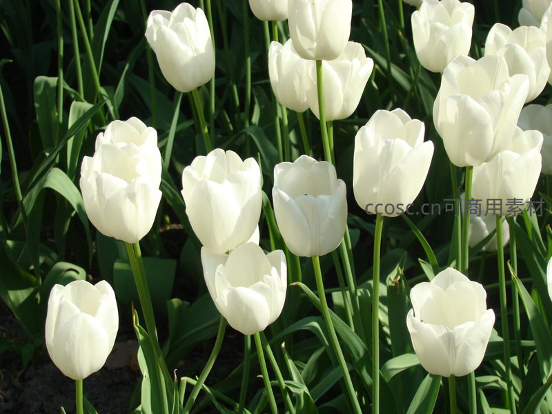 纯白郁金香丛生,清雅脱俗如雪绽放