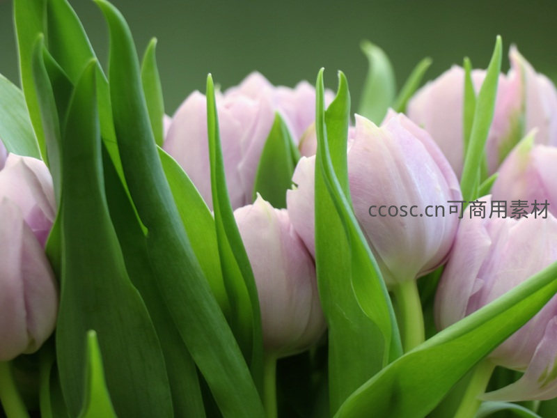 淡紫郁金香花苞,绿叶环绕含蓄待放