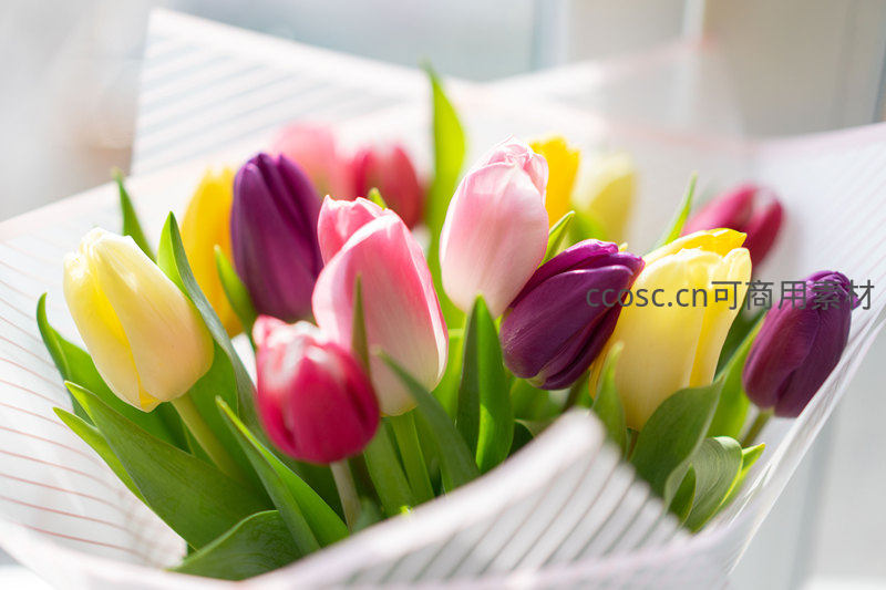 多彩郁金香花束温馨绽放