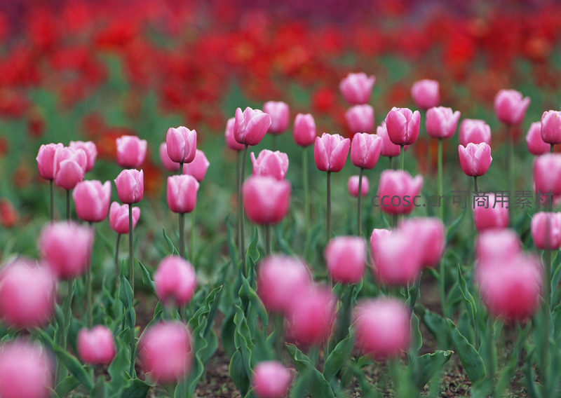 粉嫩郁金香在柔光中摇曳生姿