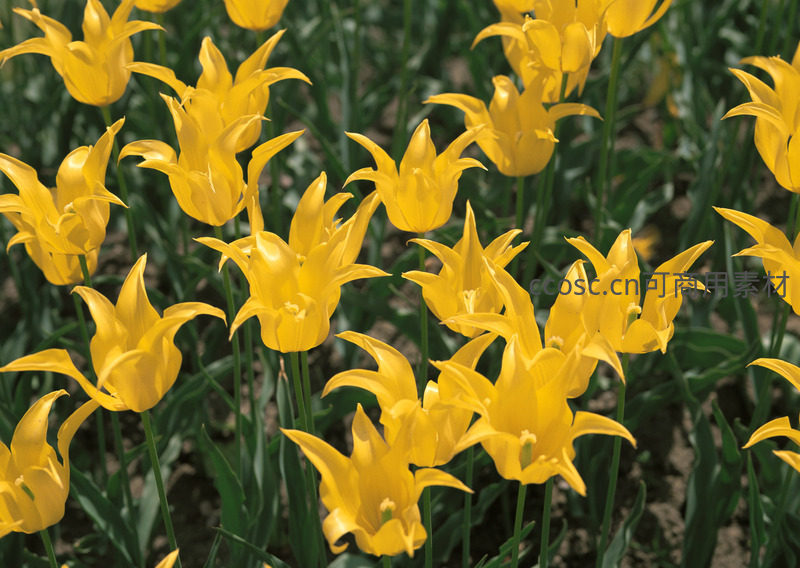 大片金黄色郁金香在明媚阳光下盛放,花瓣如丝绸般光滑,充满活力与希望,是春日里最耀眼的自然画卷。