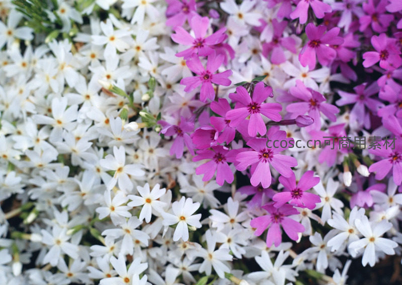 洁白与粉紫色花朵相邻而生,色彩柔和过渡,宛如精心绘制的梦幻画卷,宁静而富有诗意。