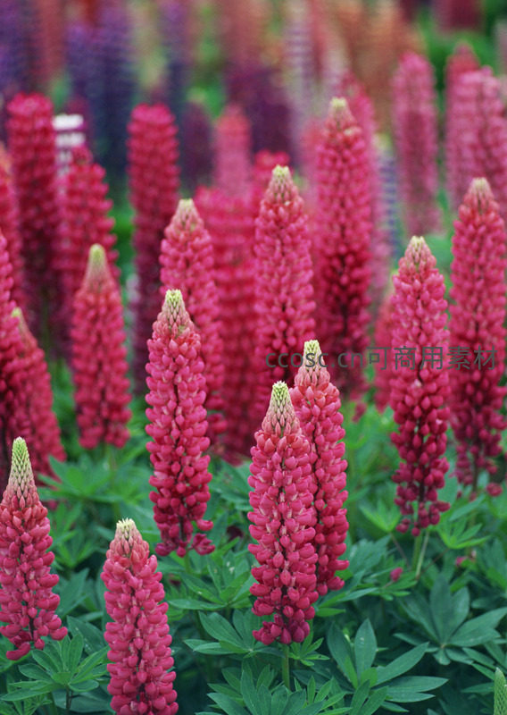 一簇簇玫红色的羽扇豆花穗挺拔向上,花瓣层层叠叠,娇艳欲滴,在绿叶映衬下更显生机勃勃,是春季花园的视觉焦点。