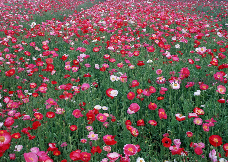 无数红粉花朵密集盛开,形成一片无边无际的彩色海洋,每一步都踏在花香与色彩交织的梦幻之中。