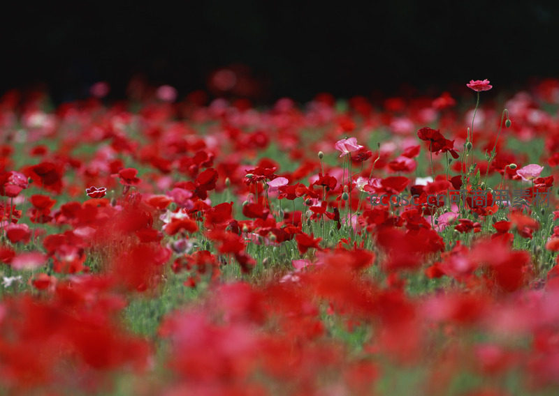 朦胧光影中的深红花海,诗意盎然