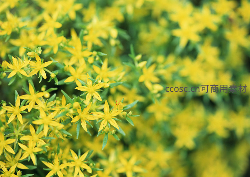 密集的黄色小花铺满画面,每朵都精致小巧,绿色叶片点缀其间,整体呈现出一派热闹而温暖的春日景象。