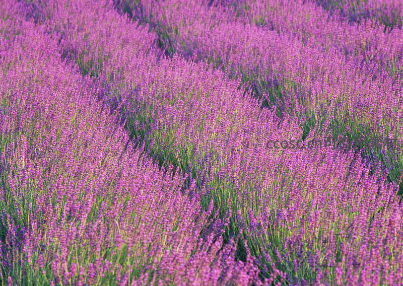 大片粉紫色的花田按行种植,线条优美,色彩柔和,在阳光下呈现出如波浪般的纹理,展现人工与自然的完美结合。
