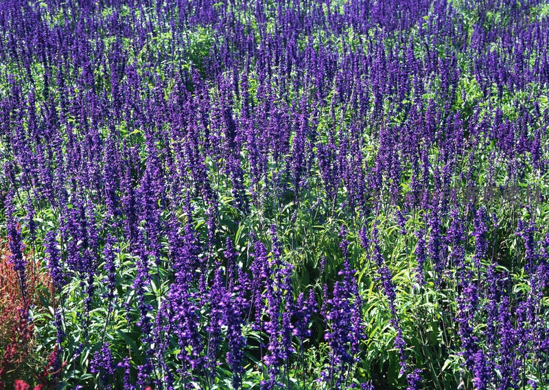 深紫色鼠尾草花海在阳光下熠熠生辉