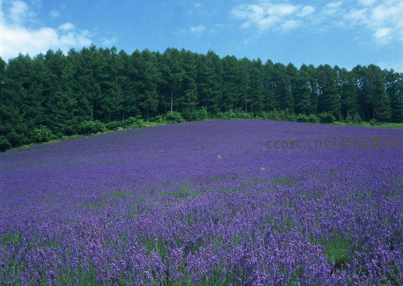 薰衣草田紧邻茂密森林,形成紫色与绿色的天然边界,展现生态系统的丰富性与自然环境的静谧宜人。