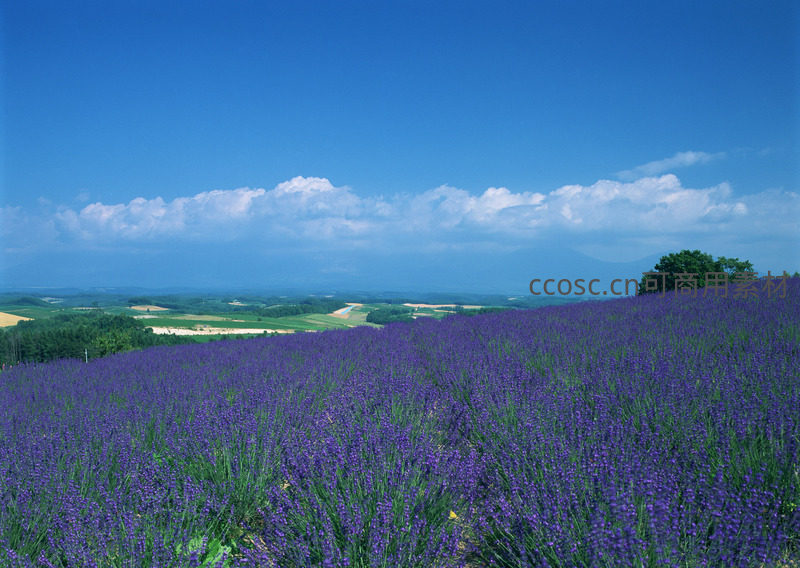 远眺薰衣草坡地与辽阔平原,视野开阔