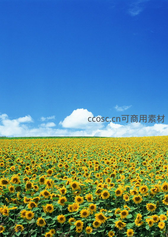 金黄向日葵花海沐浴在蔚蓝晴空下