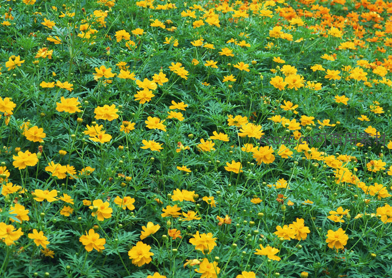 金黄波斯菊铺满大地,如阳光般灿烂夺目
