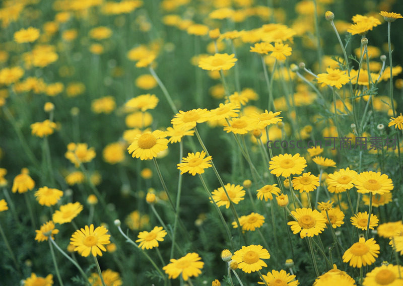 雏菊花海随风摇曳,淡雅黄花点缀绿野