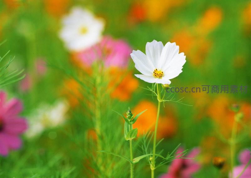 洁白波斯菊独秀于斑斓花海