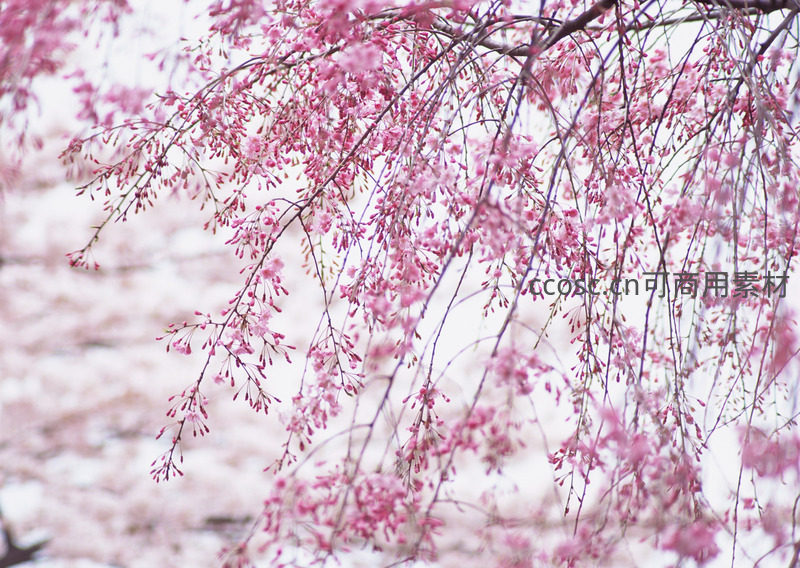 近距离捕捉垂枝樱花的细节,粉红花瓣娇嫩欲滴,背景虚化突出主体,展现春天生命细腻温柔的瞬间之美。