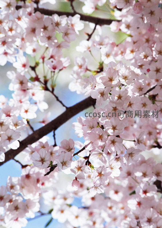 从低角度仰望,洁白的樱花在湛蓝天空的映衬下格外纯净,阳光穿透花瓣洒下斑驳光影,尽显春日的宁静与美好。