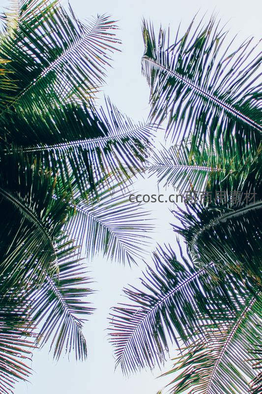 仰望棕榈叶隙,阳光穿透的绿意盎然