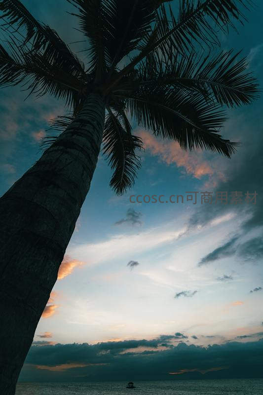 仰望椰树下的暮色海天