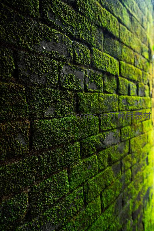 青苔覆盖的砖墙,岁月静好