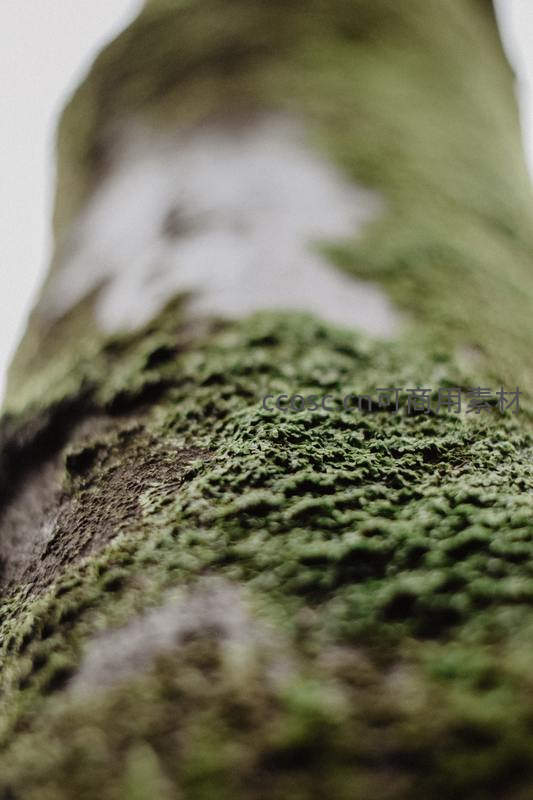近距离拍摄树干表面覆盖的鲜绿苔藓,质感蓬松柔软,展现了自然界中微小生命的顽强与美丽,充满生态细节。