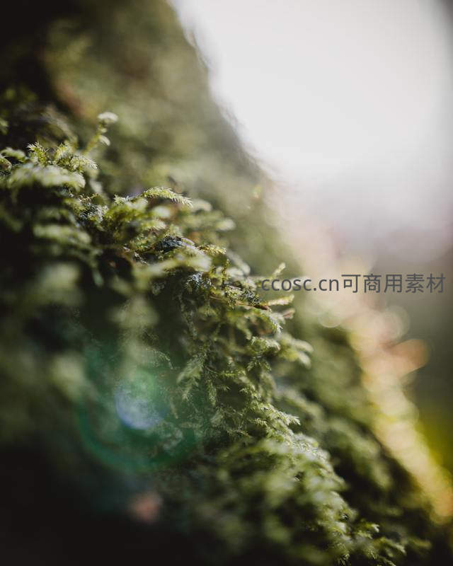 镜头聚焦于树干上细密的苔藓,每一根绒毛都清晰可见,柔和光晕衬托出其鲜活的生命力与细腻的自然纹理。