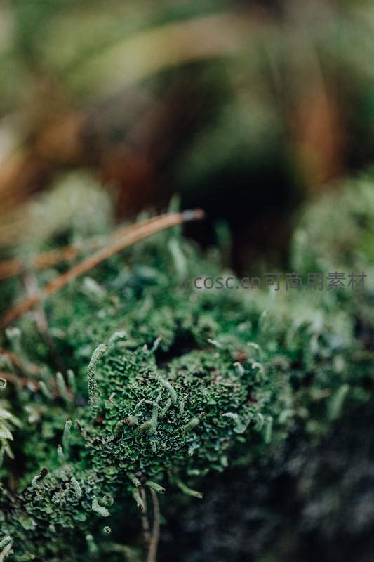 近距离捕捉附着在树干上的青苔,其独特的绒毛状结构和不规则边缘在暗色背景下格外突出,展现了自然界的精妙构造与顽强生命力。