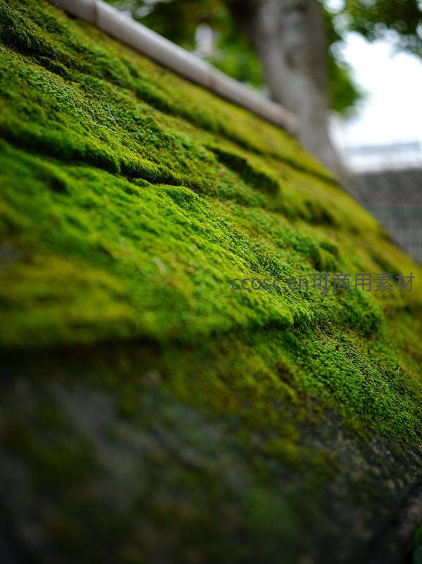 石阶上的浓密青苔,鲜绿如绒毯覆盖表面