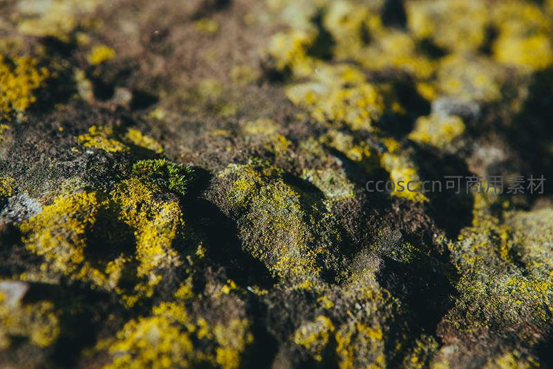 斑驳的岩石上,黄绿色的苔藓如星点般散落,在明暗交错的光线下,呈现出大地肌肤般原始而生动的肌理。