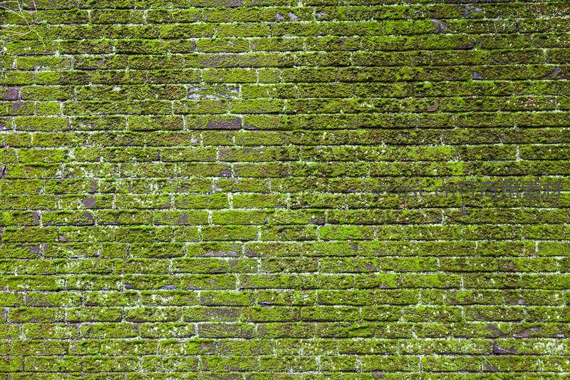 一面古老的砖墙被茂密的绿色青苔完全覆盖,砖缝间透出岁月痕迹,形成充满生机与质感的自然背景纹理。