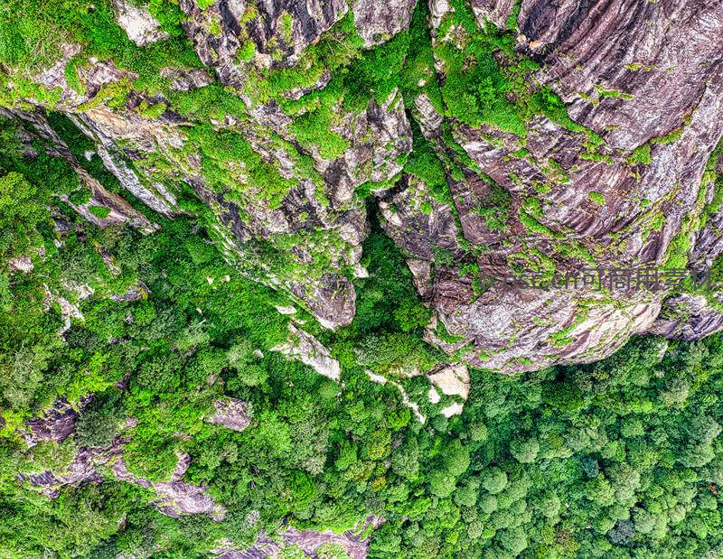 航拍苍翠山峦与嶙峋岩壁交织盛景
