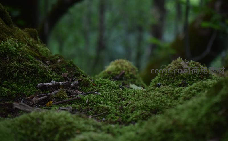 潮湿的森林地面,粗壮的树根被厚厚的青苔温柔覆盖,枝叶间透下的微光洒在绒毯般的苔藓上,营造出一种原始、宁静且充满生命力的自然场景。