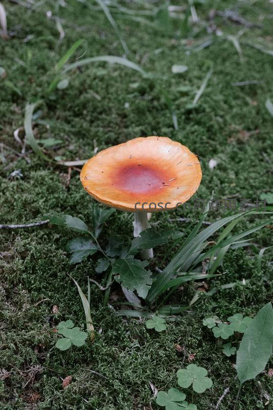 橙红菌盖点缀绿苔,清新自然野趣盎然