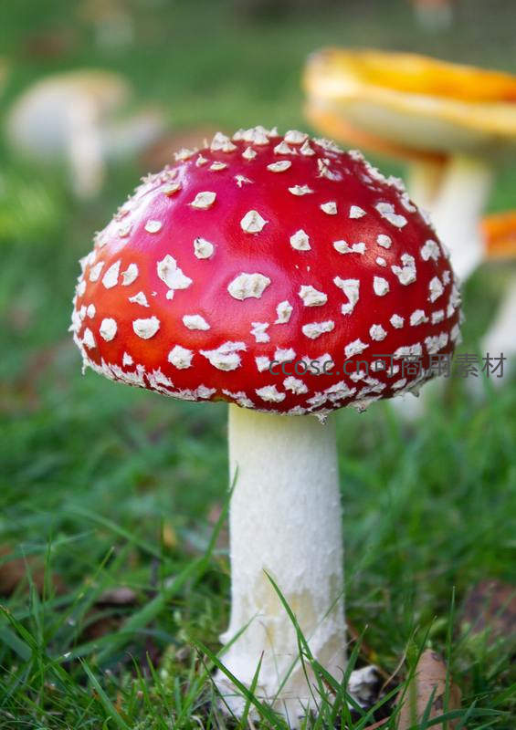 鲜红带白斑的毒蝇伞近景