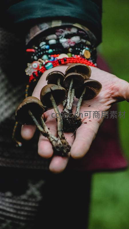 掌心捧着刚采的野生蘑菇