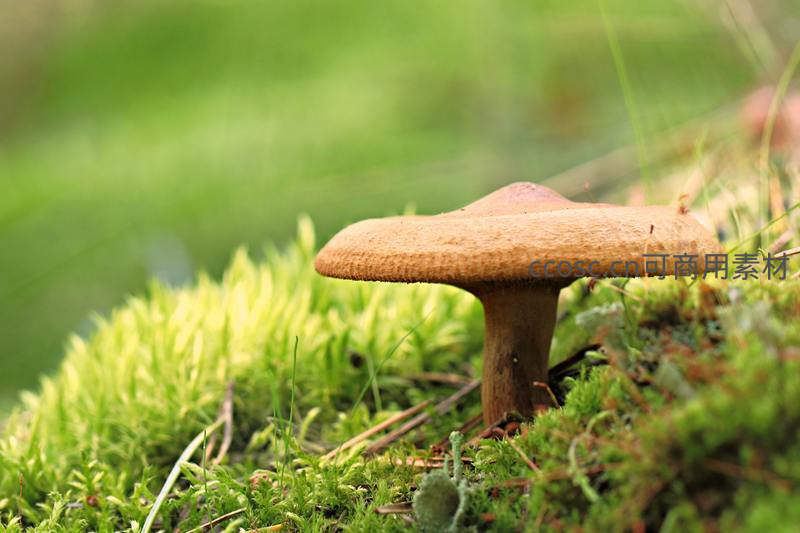 绿苔衬托下的圆顶蘑菇静景