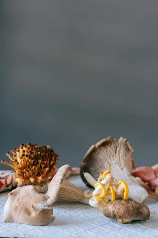 多种食用菌类的精致静物组合