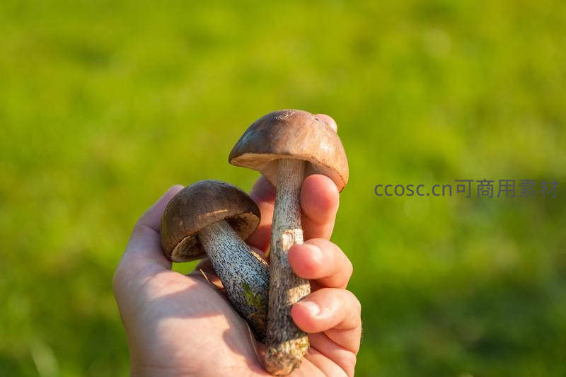 手中握着新鲜采摘的牛肝菌